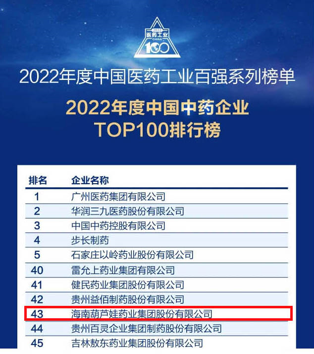 美狮贵宾会药业集团连续4年荣登“中国中药企业TOP100排行榜”,排名上升至第43位